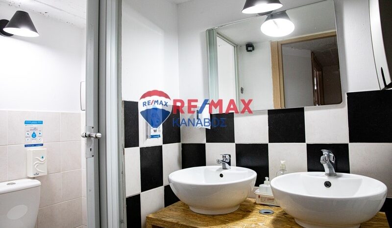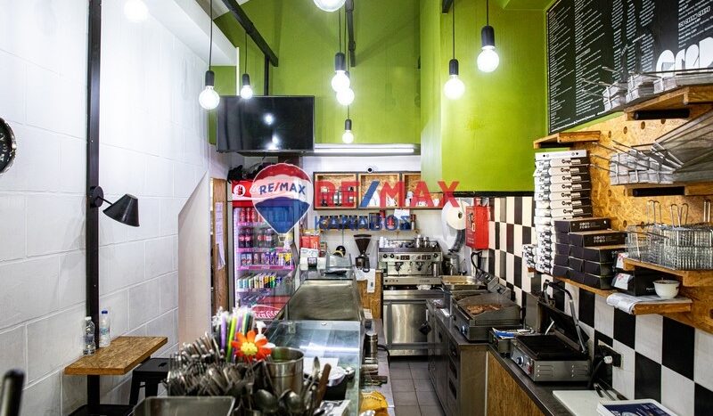 Στο κυρίως κατάστημα, στο ισόγειο υπάρχει όλος ο εξοπλισμός ενώ στο υπόγειο διαθέτει κουζίνα και W.C.